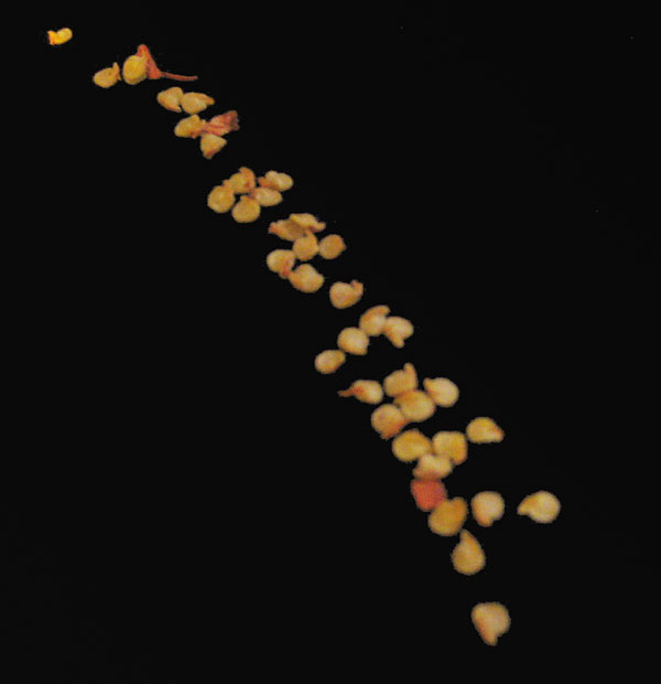 I’ve snapped a shot of the wonderful little seeds (pictured to the right). They look virtually identical to most of the other chiles in the Capsicum chinense species. The capsaicin level in these goes far beyond any other pepper seed I’ve touched and expectedly I had to furiously wash my hands after handling these puppies.