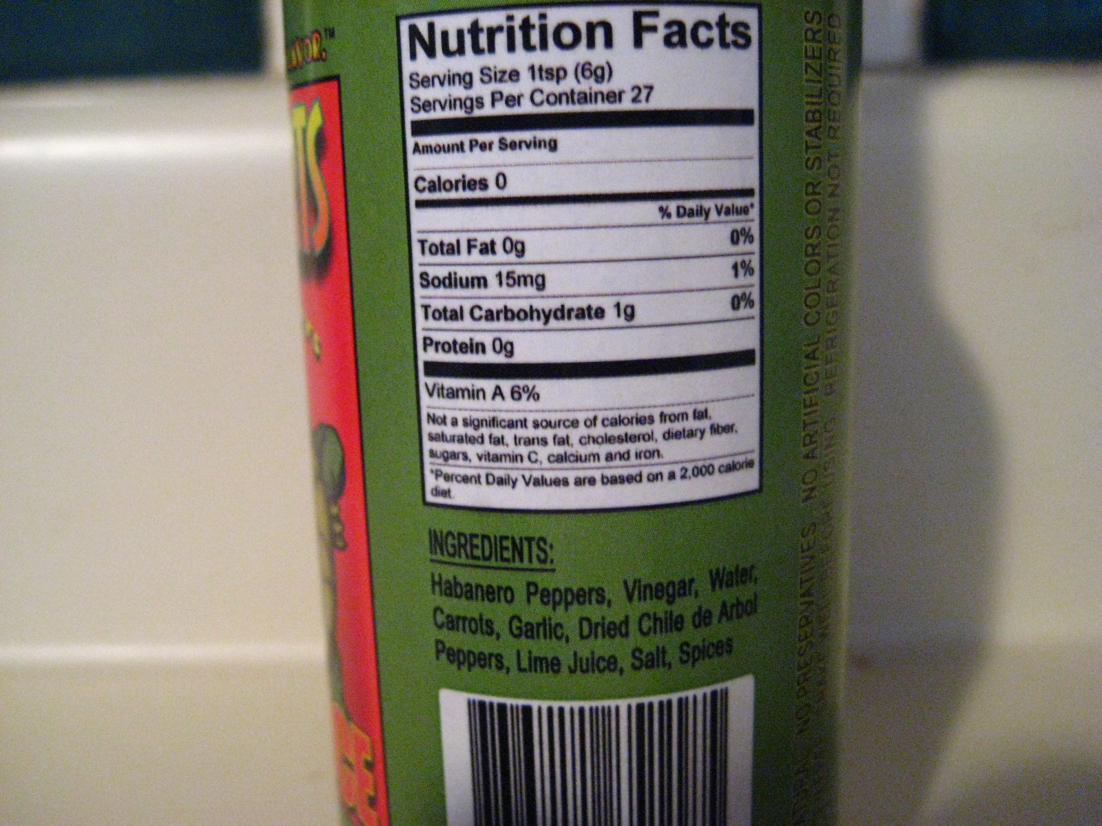 Habanero, vinegar, water, carrots, garlic, Dried Chile de Arbol Peppers, lime juice, salt, spices